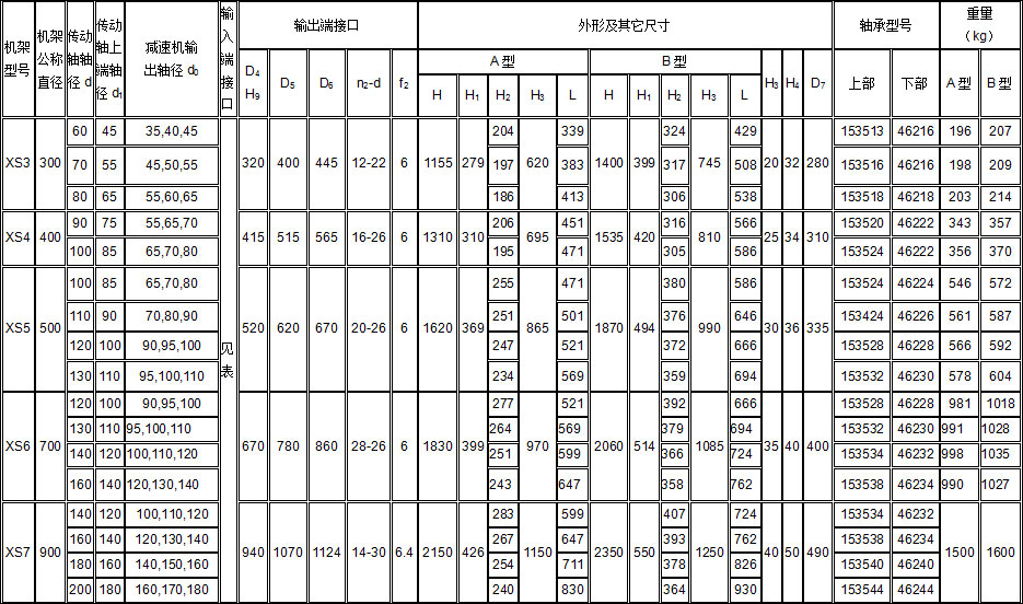 XD、XS型機(jī)架輸入端接口尺寸