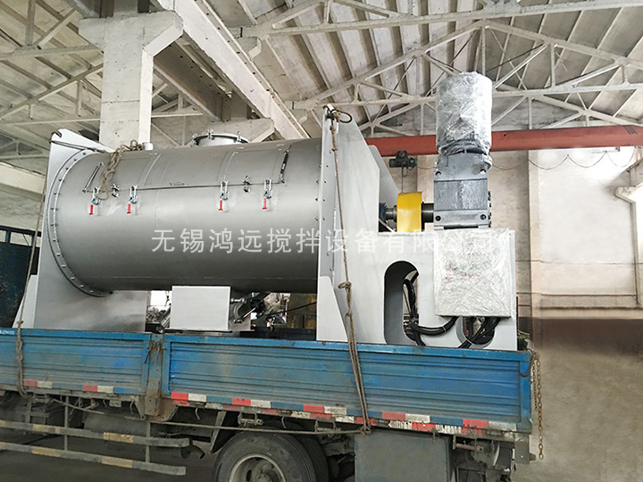 犁刀混合機,由主軸減速機帶動犁刀組軸運動,一部分將物料沿筒體圓周作徑向運動,同時將物料沿犁刀兩側的法線方向拋出,另一部分被拋出物料經飛刀組時,被高速旋轉的飛刀剪切攪拌而強烈也適合粘狀、稠狀、塊狀固—固(粉體與粉體)、固—漿(粉體與膠漿液)的物料或密度差異較大的物料也能混合。